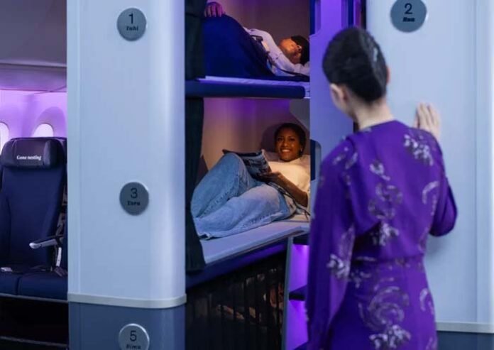 The airline’s new “Skynest” pods will debut on its Auckland-to-New York route in November 2026, on one of the longest commercial flights in the world, at around 17 hours. Skynest will operate onboard the airline’s new Boeing 787-9 Dreamliner aircraft.