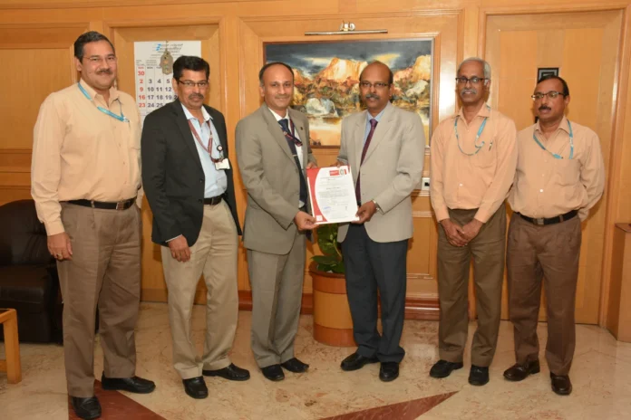 Mr Gowtama M V, Chairman and Managing Director, BEL, received the accreditation certificates from Mr V Sankarasubramanian, Area Manager, Bureau Veritas, at a function held at BEL Corporate Office in Bengaluru on September 11, 2018.