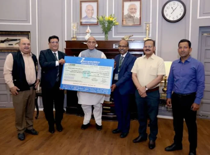 MV Gowtama, Chairman & Managing Director, BEL, presented the second interim dividend cheque of Rs 174,43,63,569.20/- (Rupees One Hundred Seventy-four Crores Forty-Three Lacs Sixty-three Thousand Five Hundred Sixty-nine and Twenty Paise only), payable on the shares held by President, to Defence Minister Rajnath Singh in New Delhi on March 30. BEL has declared 140 per cent as second interim dividend (Rs 1.40/- per share) to its shareholders for the financial year 2020 – 21.