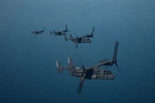 Recent program accomplishments include the V-22’s latest variant, the CMV-22B, assigned to the “Titans” of Fleet Logistics Multi-Mission Squadron 30, completing the first delivery of an F-35 engine to the USS Carl Vinson, along with successful paradrops with the US Navy’s parachuting team, “The Leap Frogs,” earlier in the year.