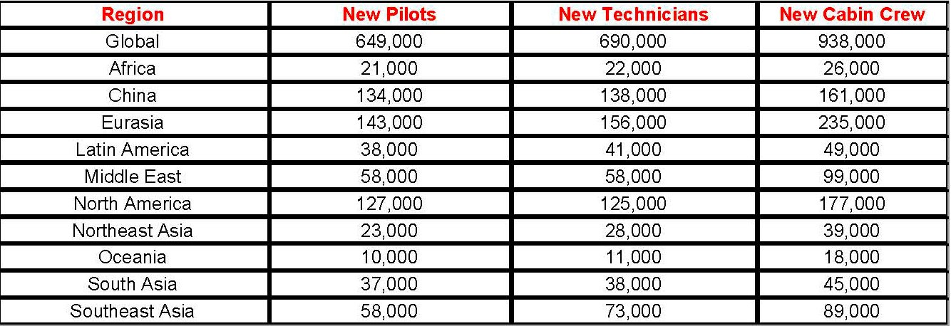 The company’s 2023 Pilot and Technician Outlook (PTO) projects that commercial carriers will need significant personnel through 2042 to support the global commercial fleet:
