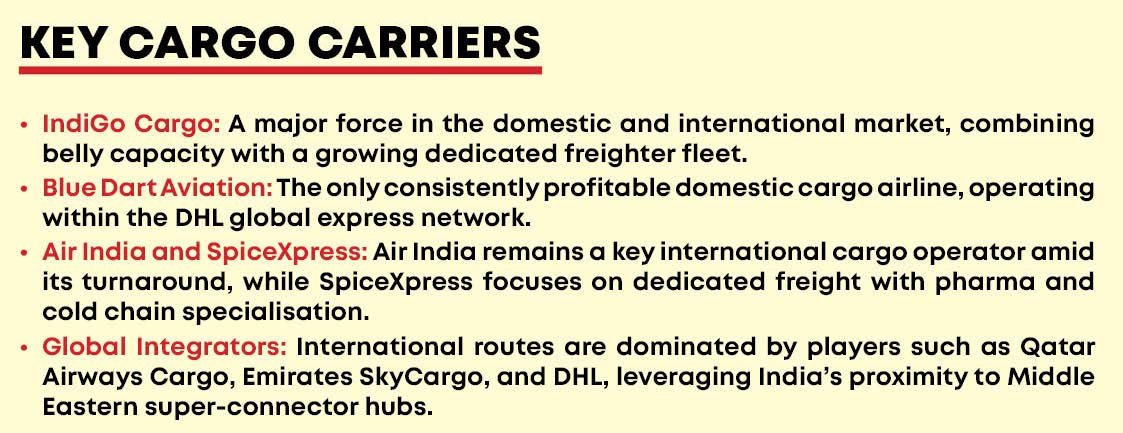 Air India, currently in a phase of transformation under new ownership, continues to be a significant international cargo player, while SpiceXpress operates as a dedicated cargo entity with specialised capabilities in pharmaceuticals and cold chain logistics.