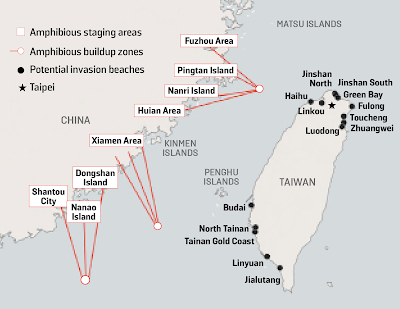 We will assume that China is successful in keeping the nuclear angle out. USA will react. South Korea, Japan and Australia might react. Hence, they must be confronted and kept at bay. So a set of naval and aerial encounters over the Yellow Sea, East China Sea, Philippines Sea and South China Sea are inevitable. These will extend aerially to the mainland. China would have to employ considerable firepower to degrade Taiwans Armed Forces. There will be retaliation from Taiwan. Preemptive attacks by Taiwan to dislocate the preparations cannot be ruled out. The Chinese will have to launch their assaults (amphibious or airborne) from 2-3 mounting bases and converge on to the chosen beaches/ airheads where it is feasible to land. After all it will be based on weather, slope, tide, exit areas etc etc. There will be no surprise whatsoever. All assaults will be unidirectional from the West only. The Taiwanese will be waiting at the available beach heads for the Chinese assault troops. Many such plans are available even on the internet also (see below). Disruption of assault echelons and landing craft will commence at sea by the Taiwanese simultaneously. All break outs will be fighting break outs through urban areas. Operations in depth will be in fully urban terrain and built up areas. All fancy things like AI, Cyber etc are mostly out of the equation once the shooting starts and blood starts flowing.