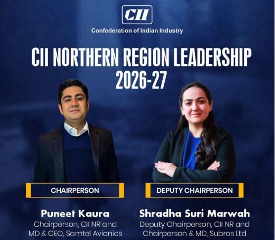 Puneet Kaura, Managing Director and CEO, Samtel Avionics, has been elected as Chairperson, while Shradha Suri Marwah, Chairperson and Managing Director, Subros Ltd, will serve as the Deputy Chairperson for 2026–27. Together they will steer CII Northern Region across seven states— Delhi, Haryana, Himachal Pradesh, Punjab, Rajasthan, Uttarakhand, Uttar Pradesh; and three Union Territories—Chandigarh, Jammu & Kashmir, and Ladakh.