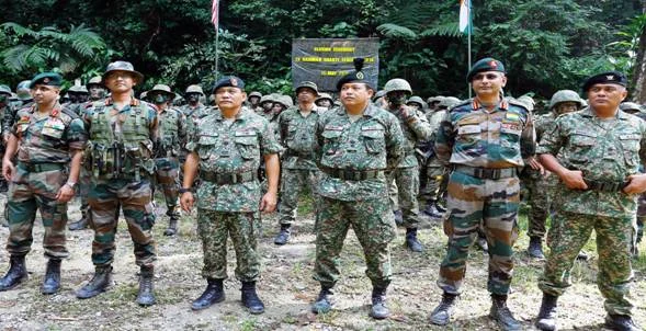 His Excellency Mridul Kumar, Indian High Commissioner to Malaysia, also visited the Exercise contingents at the Exercise area and complimented the troops on successful completion of the joint training exercise. He was highly appreciative of the high spirits and exemplary drills shown by the Contingents under challenging conditions and inclement weather.