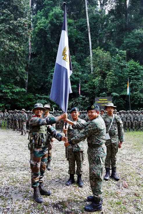 In his closing address, the Commander complimented the troops from both the contingents for their exemplary conduct, high morale and tactical acumen throughout the Exercise. He also remarked that the Contingents would have learned by sharing their knowledge and experiences. He also complimented the Indian contingent for assimilating and understanding the nuances of jungle operations as per Malaysian doctrine and fighting shoulder to shoulder with their Malaysian Counterparts. The ceremony came to a close with the war cries of both the contingent and customary recital of prayers by the Malaysian Army.