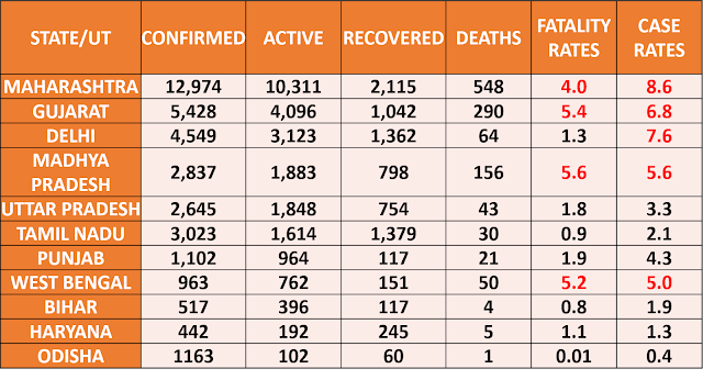 - Fatality rates in Maharastra, Gujrat, MP and WB are too high. Cause for concern. They account for 2/3rd of corona virus deaths in India