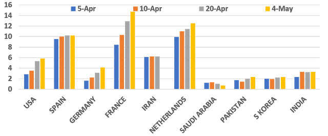 International Comparison. Our fatality and death rates remain incredibly low whether one compares it with either temperate nations or tropical nations. The charts given below cover the period from 05 Apr to 04 May. We are in fact doing well irrespective of the articles which keep coming in the western media about various negative aspects about how India is faring.