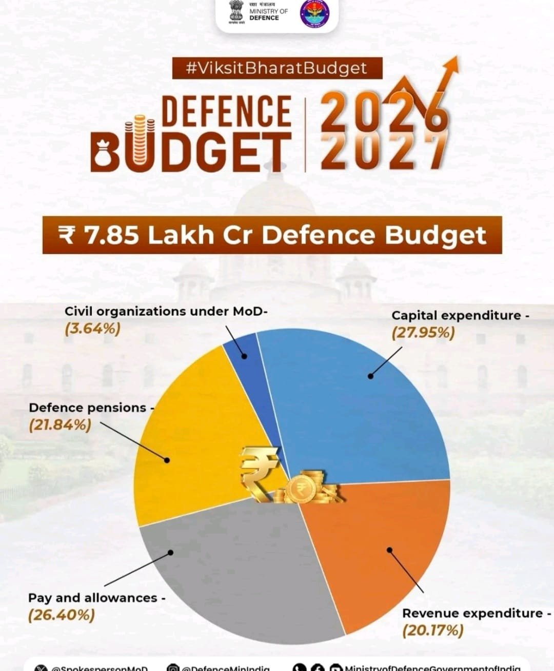 The 2026 defence allocation of ₹7,84,678 crore reflects a 15.2 per cent increase in absolute terms, particularly in capital outlay to ₹2.19 lakh crore (increase 22 per cent), signalling recognition of modernisation imperatives. However, when examined through a capability lens rather than headline figures, enduring structural constraints limit its transformational impact. The issue is not intent, but sufficiency, sequencing and alignment with the character of future warfare