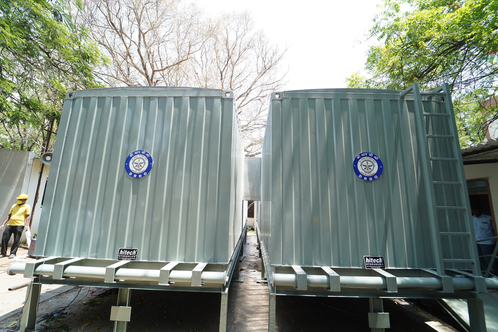 DRDO acknowledged the contributions of M/s iCOMM for provision of containers, M/s iClean for design and build of the BSL2 and BSL3 labs in a time bound manner, and M/s Hi Tech Hydraulics for providing the base frame.