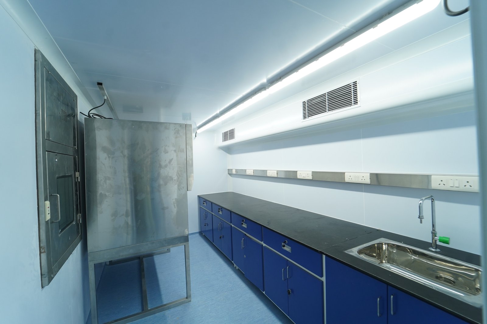 The Mobile Viral Research Lab is the combination of a BSL 3 lab and a BSL 2 lab essential to carry out the activities. The labs are built as per WHO and ICMR Bio-safety standards to meet international guidelines. The system has built in electrical controls, LAN, Telephone cabling, and CCTV.