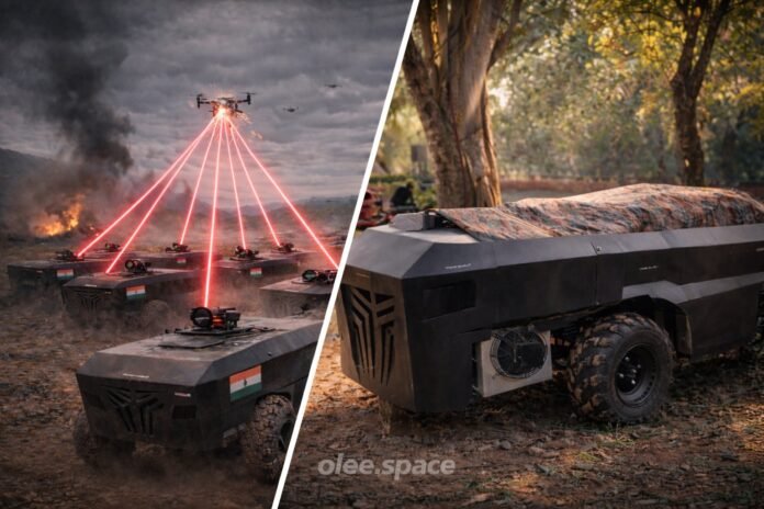 New Delhi: A 2 KW AI-enabled laser sniper mounted on an unmanned ground vehicle (UGV) has been launched by Pune-based defence tech startup olee.space. The system has completed field testing and is ready for operational deployment and sale, the company said.