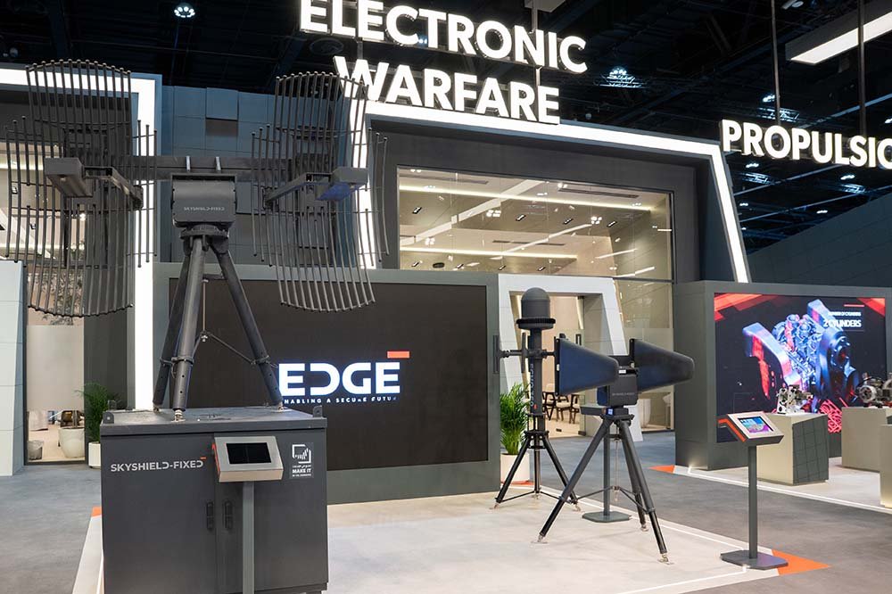 In electronic warfare, EDGE demonstrates systems to protect operations in contested electromagnetic environments. Highlights include the BORDERSHIELD autonomous border surveillance and security system, along with the GPS PROTECT 2 and GPS PROTECT 4 anti-jamming solutions.
