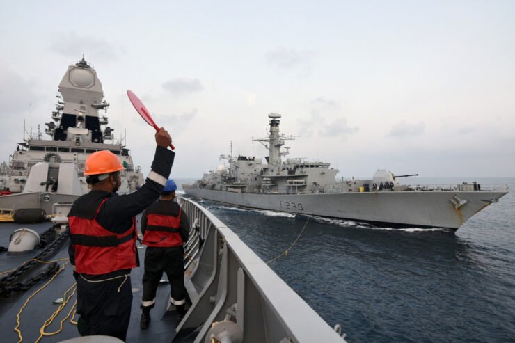 All participating units were split into two opposing forces with the aim of achieving ‘sea control’ to land Army ground-troops at a pre-designated site. One force was led by the Flag Officer Commanding Western Fleet and comprised the flag ship INS Chennai, other warships of the Indian Navy and HMS Richmond, the Royal Navy’s Type 23 frigate. The other force operated under the UK Carrier Strike Group comprising aircraft carrier, HMS Queen Elizabeth, other UK and Netherland naval ships, and Indian warships.