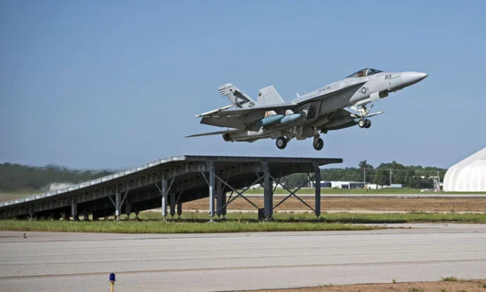 New Delhi: With the arrival of two Boeing F/A-18 Super Hornets on May 20, the stage is set for the fighter aircraft to showcase their ski-jump from the shore-based test facility (SBTF) at INS Hansa in Goa. The fighter will undergo a series of drills starting this week and project their capabilities to operate from Indian aircraft carriers.