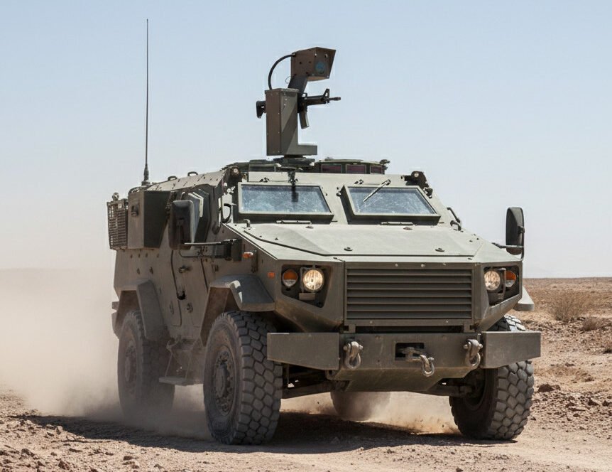 Further enhancing its operational profile is its comprehensive sensor suite, offering full day/night capability. It utilises enhanced sensor sensitivity for superior clarity in near-dark conditions and includes an integrated Thermal and Infrared (IR) pointer/illuminator for stealth engagement. The DART-X P’s design emphasis on weather resistance, with sealed electronics for extreme climates, ensures reliability regardless of the operational theatre. Its universal mounting capability makes it suitable for Light Tactical Vehicles (LTVs), Unmanned Ground Vehicles (UGVs), and Armoured Personnel Carriers (APCs).