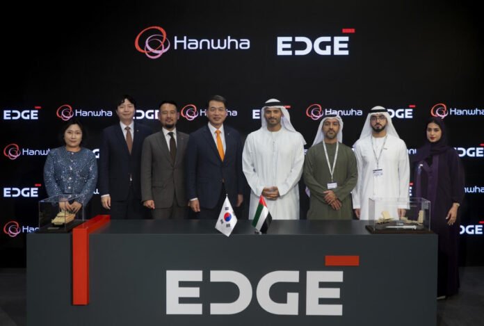 Abu Dhabi, UAE: EDGE, one of the world’s leading advanced technology and defence groups, and Hanwha Aerospace, a leading South Korean company specialising in space, aviation and defence, have signed a Memorandum of Understanding (MoU) to explore strategic defence cooperation across advanced air and missile defence, long-range precision strike, unmanned systems, and defence AI.
