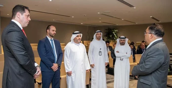 The Brazilian delegation, led by Admiral Flavio Rocha, Special Secretary for Strategic Affairs of the Executive Office of the President, Dr. Marcos Degaut, Secretary of Defense Products of the MOD, Eduardo Bolsonaro, Congressman in the House of Representatives, His Excellency Fernando Luis Lemos Igreja, Brazilian Ambassador to the UAE, and other dignitaries, were met by members of the EDGE leadership team including His Excellency Faisal Al Bannai, Chairman of the Board of Directors, Mansour Al Mulla, CEO and Managing Director, Hamad Al Marar, Cluster President – Missiles & Weapons (M&W), Omar Al Zaabi, Senior Vice President – Trading & Mission Support cluster, and other senior members of the EDGE leadership including the CEOs of EDGE entities HALCON, ADASI, AL TARIQ, CARACAL, LAHAB, NIMR, and AL JASOOR.