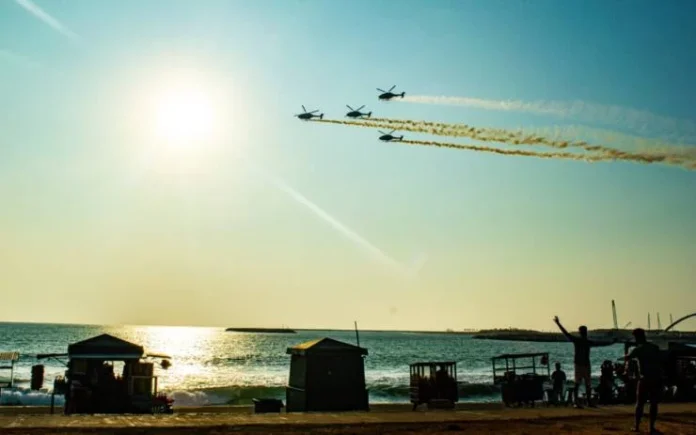 As part of his visit, the CAS attended the inaugural ceremony on March 3, during which a Flypast and Aerobatic Display was scheduled. The air show at Galle Face Colombo saw participation by the IAF contingent comprising of Suryakiran & Sarang Aerobatic Display Teams and Tejas LCA. The IAF contingent arrived in Colombo on February 27. The flypast, a significant event, is a reminiscence of the IAF’s Suryakiran Display Team performance at the Golden Jubilee celebrations of SLAF, two decades ago.