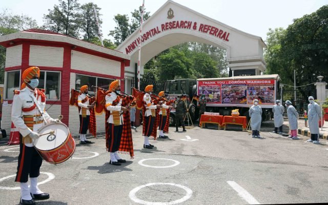 SU-30s also flew over the Army Base Hospital in the capital as a Mi-17 V5 helicopter showered petals and an Army band played martial tunes to pep up the mood of the brave corona warriors who without concern for their lives and have been away from their families for weeks dedicating their lives in the service of the nation.