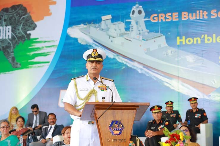CNS Admiral Hari Kumar in his address said,…. the Leander or the ‘Giri’ Class was a symbol of national pride, marking the beginning of our determined journey towards becoming a ‘Builders Navy’. Nearly five decades later, the launch of the new ‘Giri’ is a shining milestone, as it marks our coming of age in building Stealth Ships.