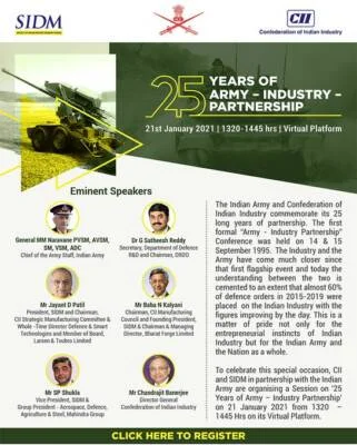 To mark the occasion, an MoU between the Indian Army and SIDM was inked to provide further impetus to indigenisation under the ‘Atmanirbhar Bharat’ and to achieve strategic independence by reducing dependence on foreign origin equipment. This MoU was signed on the occasion of 25 Years of Army-Industry Partnership with Confederation of Indian Industry (CII). Collaboration between the Indian Army and industry started in 1995 with the indigenisation of spares and has progressed to major defence platforms and a wide range of weapons and equipment.