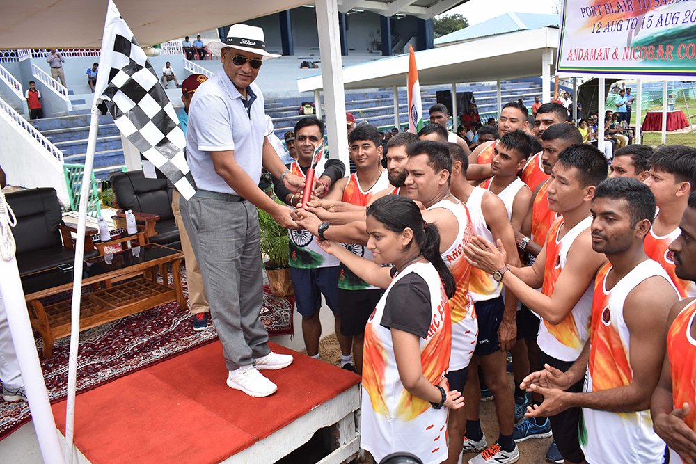 A team of twenty runners comprising of service personnel from all four components of the Command led by Cdr Arjun Kumar is participating in the event. Kumar Swamy, resident of Dairy farm, Port Blair who is working in the HQ ANC is also participating in the run. The run started from Port Blair at 10 AM on August 12 and will reach Jirkatang by 07 AM on August 13, 18.