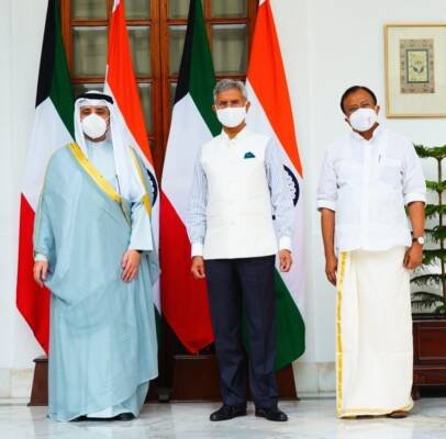 “Glad to welcome this morning, along with @MOS_MEA, FM @anmas71 of Kuwait. Productive discussions on our bilateral agenda & regional developments,” Jaishankar wrote on Twitter.