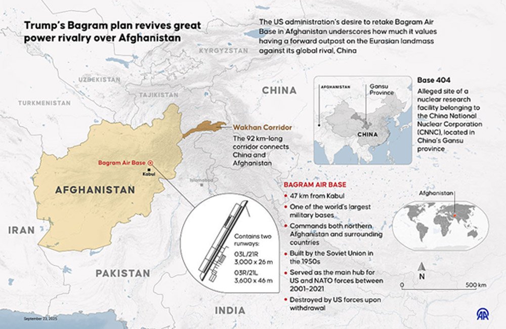 The renewed debate on a possible US return to Bagram Air Base — once the most fortified American installation in Afghanistan — has sparked concerns across Eurasia. Among the most significant of these is China’s apprehension that an American re-establishment at Bagram could serve dual purposes: counter-terrorism and strategic surveillance of China’s western nuclear and missile infrastructure.